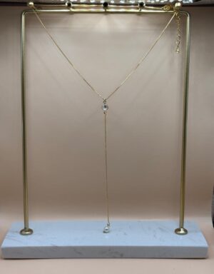 Colar Gravata Cristal e Pérola Dourado – (RR83)
